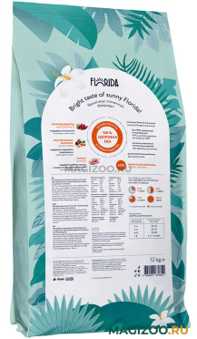 Сбалансированное полнорационное питание заботится о коже и шерсти и способствует здоровому пищеварению. В рационе кормов Florida используется только белок животного происхождения.