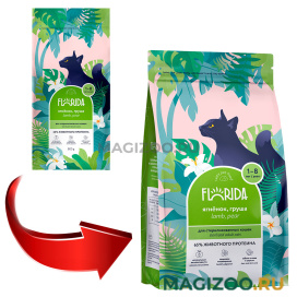 Сухой корм супер-премиум класса Florida с ягненком и грушей для кастрированных котов и стерилизованных кошек в возрасте от 1 до 8 лет.