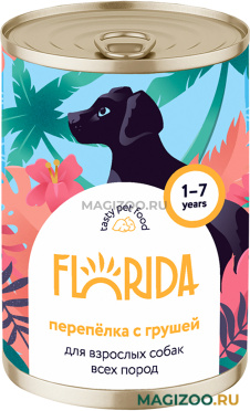 Полноценный влажный корм FLORIDA для взрослых собак всех пород от 1 до 7 лет с перепелкой и грушей.