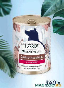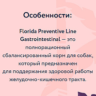 Полнорационный сбалансированный влажный корм для собак Florida Preventive Line Gastrointestinal предназначен для поддержания здоровой работы желудочно-кишечного тракта.