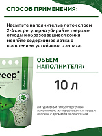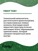Уникальный наполнитель Freep, растительного происхождения, из спрессованных соевых волокон, благодаря своей пористой структуре отлично впитывают влагу, образовывая крепкий комок, который запирает неприятный запах внутри - это натуральный и экологически чистый материал, который не подвергается дополнительной обработке химическими составами, что гарантирует его гипоаллергенность.