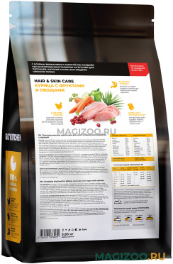 Полнорационный сухой корм для котят и кошек с курицей, фруктами и овощами.