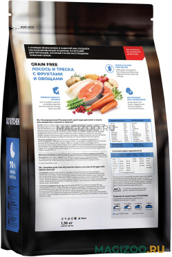 Полнорационный беззерновой сухой корм для котят и кошек всех возрастов с лососем и треской, фруктами и овощами