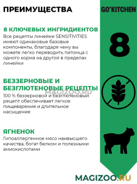 Корма холистик-класса GO'KITCHEN не содержат искусственные красители, ароматизаторы и консерванты, антибиотики и гормоны роста.