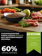 Корма холистик-класса GO'KITCHEN не содержат искусственные красители, ароматизаторы и консерванты, антибиотики и гормоны роста.