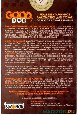 Мультивитаминное лакомство для собак Good Dog со вкусом сочной баранины – это вкусное и полезное лакомство, которое дополнит ежедневный рацион Вашего питомца.