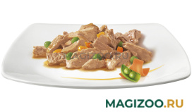 Удобная упаковка с вкусным кормом, обладающим приятным ароматом. Индейка с овощами хорошо сочетается. Ценник корма радует. Смотрится аппетитно, хорошие мясные кусочки, соуса в меру. Упаковка открывается легко, стоит недорого.