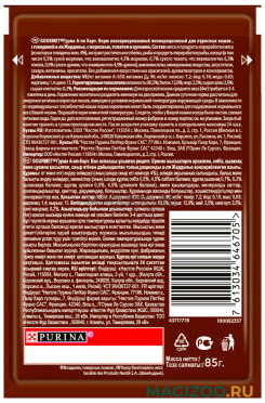 Даже название звучит аппетитно - мясо с комплексом овощей, блюдо интересное, а главное полезное и вкусное для кота. А мне важно, что ценник доступным был. Форма пачки - пауч, все удобно сделано, размер порции по весу очень стандартный, а вот текстура очень порадовала.