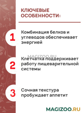 Подавайте корм комнатной температуры. Следите, чтобы у Вашей кошки всегда была чистая, свежая питьевая вода. Информация о составе и ингредиентах, цветовом решении, технических и иных характеристиках, стране-изготовителе, внешнем виде и комплекте поставки товара носит справочный характер и основана на последних доступных к моменту публикации сведениях. Доставка данного товара осуществляется во все регионы РФ.