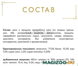 • Корм, благодаря нежной текстуре, щадяще действует на зубы и комфортно усваивается.