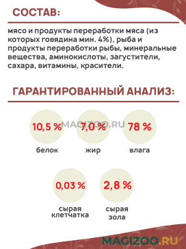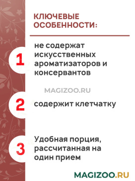 • Сочетание паштета и нежного соуса внутри пробуждает аппетит даже у самых привередливых питомцев.