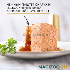 • Сочетание паштета и нежного соуса внутри пробуждает аппетит даже у самых привередливых питомцев.