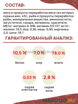 • Сочетание паштета и нежного соуса внутри пробуждает аппетит даже у самых привередливых питомцев.