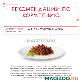 Данная суточная норма рассчитана для умеренно активных взрослых кошек, живущих в условиях нормальной температуры окружающей среды. В зависимости от индивидуальных потребностей кошки норма кормления может быть скорректирована для поддержания нормального веса Вашей кошки.