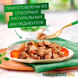 Корм для взрослых питомцев «Натуральные рецепты» — это блюда из отборных натуральных ингредиентов высокого качества. Сочетания приготовленных на пару мясных компонентов с овощами тщательно подобраны экспертами и оптимально дополняют друг друга по вкусу и пользе.