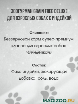 Вся продукция ЗООГУРМАН не содержит сои, консервантов и ароматизаторов. В этом нет необходимости, так как нет ничего вкуснее натурального мяса!