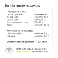 При изготовлении кормов используется только высококачественное отечественное мясное сырье (мясо, сердце, печень, рубец) от российских мясоперерабатывающих заводов. Компания принципиально не использует мясо зарубежных производителей.