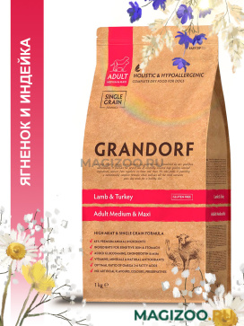 Натуральный и гипоаллергенный корм класса супер премиум холистик для взрослых собак средних и крупных пород от 1 года.
