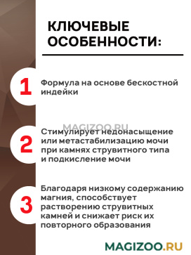 Растворение струвитов, профилактика рецидивов уролитиаза, вызываемого струвитами и оксалатами кальция, идиопатический цистит кошек.