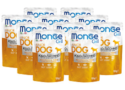 Monge (Монж) Dog Grill полнорационный беззерновой влажный корм с мясом курицы и индейки для взрослых собак всех пород 100 г.