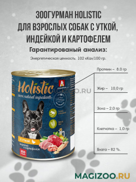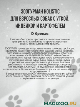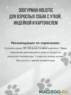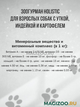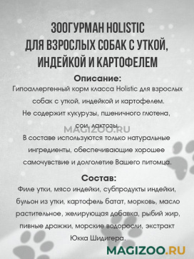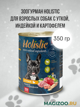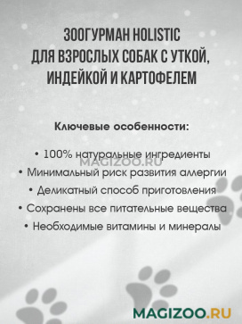 Гипоаллергенный корм класса Holistic для взрослых собак с уткой, индейкой и картофелем.