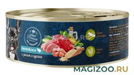 Мясо перепёлки, мясо индейки, субпродукты птицы, бульон из перепёлки, рис, цукини, морковь, масло растительное, желирующая добавка, рыбий жир, пивные дрожжи, морские водоросли, экстракт Юкка Шидигера.