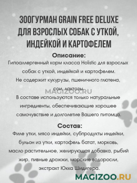 Вся продукция ЗООГУРМАН не содержит сои, консервантов и ароматизаторов. В этом нет необходимости, так как нет ничего вкуснее натурального мяса!