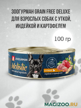 Гипоаллергенный корм класса Holistic для взрослых собак с уткой, индейкой и картофелем.