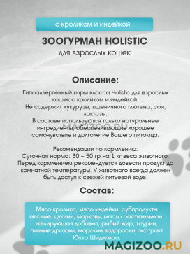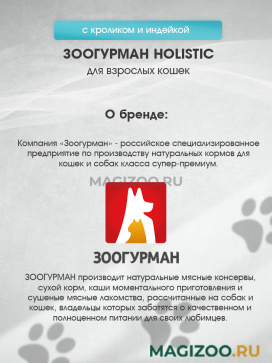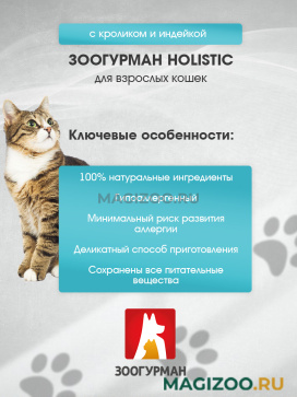 Гипоаллергенный корм класса Holistic для взрослых кошек с кроликом и индейкой.