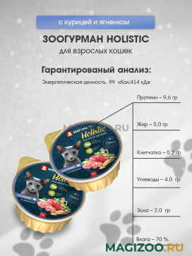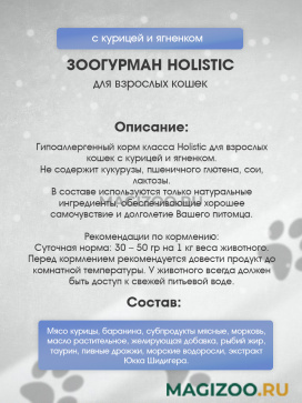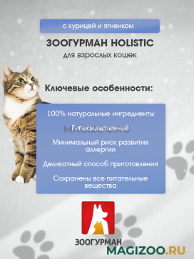 Гипоаллергенный корм класса Holistic для взрослых кошек с курицей и ягненком.