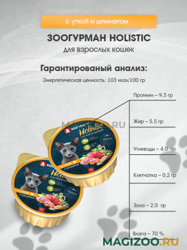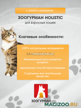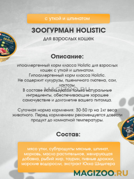 Гипоаллергенный корм класса Holistic для взрослых кошек с уткой и шпинатом.