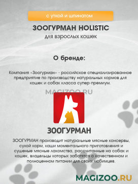 Информация о составе и ингредиентах, цветовом решении, технических и иных характеристиках, стране-изготовителе, внешнем виде и комплекте поставки товара носит справочный характер и основана на последних доступных к моменту публикации сведениях. Доставка данного товара осуществляется во все регионы РФ.ЗООГУРМАН производит натуральные мясные консервы, сухой корм, каши моментального приготовления и сушеные мясные лакомства, рассчитанные на собак и кошек, владельцы которых заботятся о качественном и полноценном питании для своих любимцев.