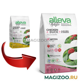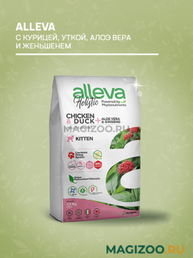 Полнорационный беззерновой корм для котят с курицей, уткой, алоэ вера и женьшенем.