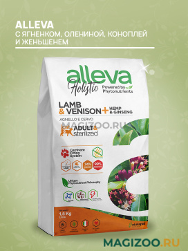 Формула корма Alleva Holistic обогащена L-карнитином и таурином, которые необходимы для нормального функционирования работы основных систем организма, а также глюкозамином и хондроитином для здоровья суставов.
