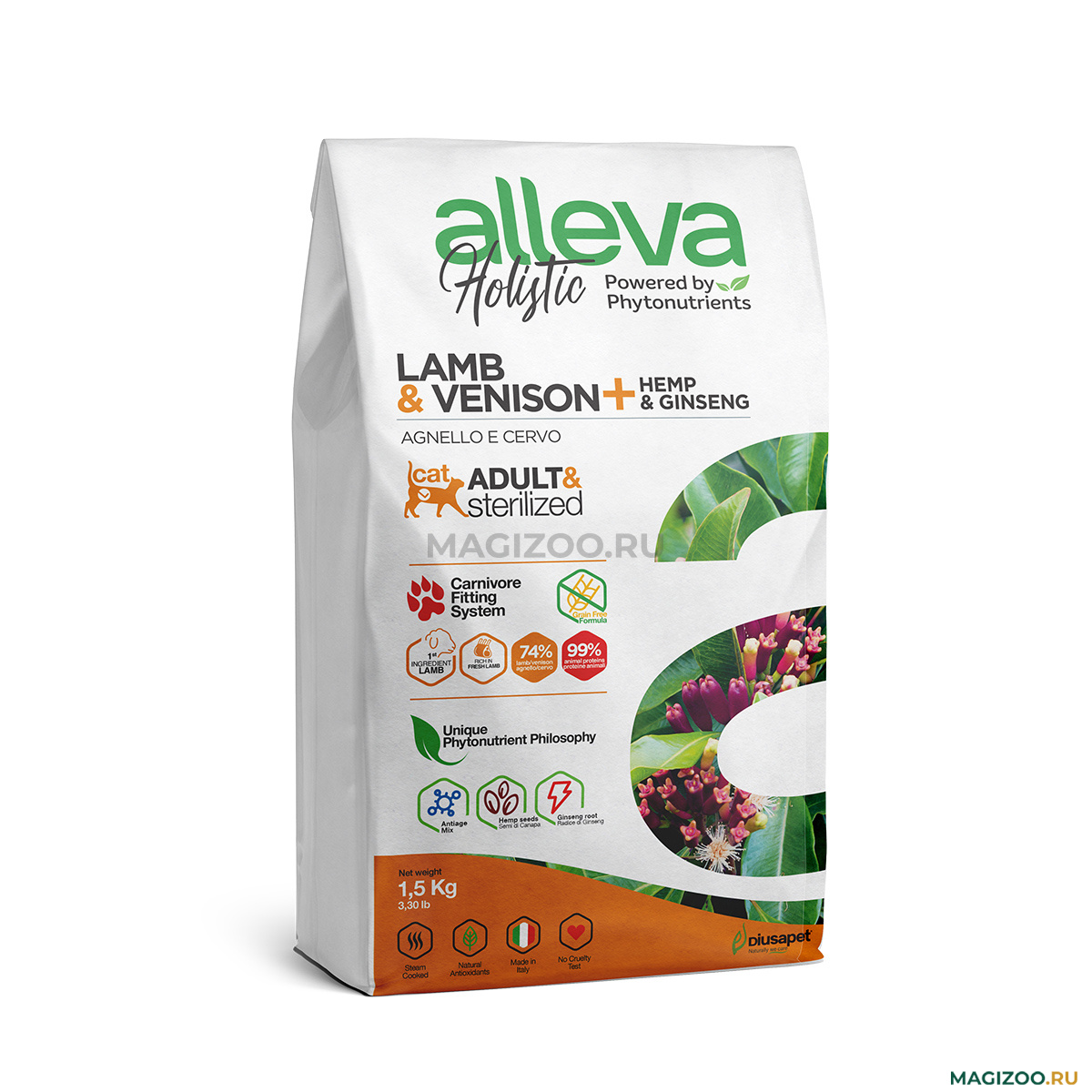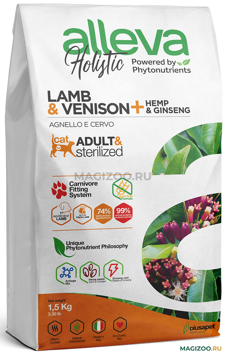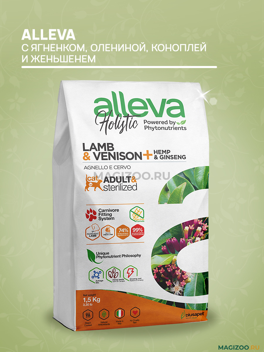 Продукт приготовлен на пару, что позволяет по максимуму сохранить полезные свойства ингредиентов. Свежесть корма обеспечивает использование натуральных антиоксидантов. Все составляющие кормов Alleva Holistic проходят строгий отбор и тщательно анализируются.