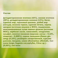 Дегидратированная ягнятина (42%), свежая ягнятина (20%), дегидратированная оленина (12%), батат, куриный жир, гороховый крахмал, рыбий жир (сельди), волокна гороха, куриная печень, корень цикория (источник инулина и ФОС), подорожник, инактивированные сухие пивные дрожжи (источник МОС), карбонат калия, глюкозамин, хондроитин сульфат, конопля посевная (верхние листья – 0,10%, соцветия – 0,005%), корень женьшеня (Panax ginseng) (0,10%), розмарин лекарственный, куркума длинная, гвоздика, лимон (Rosmarinus officinalis, Curcuma longa, Eugenia caryophyllus, Citrus sp.) - (0,05%), сок юкки.