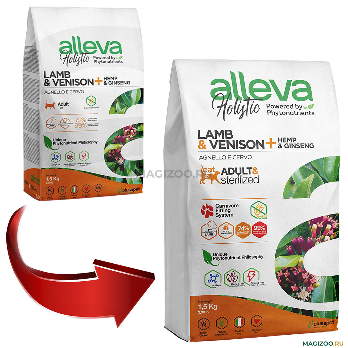 Корм для собак и кошек Alleva отличается прекрасными вкусовыми качествами, благодаря высокому содержанию отборных высококачественных белков и жиров животного происхождения. Использование фитонутриентов, фруктов, овощей и необходимых питательных веществ позволяет кормам Alleva достигать своей основной цели – благополучие домашних питомцев.