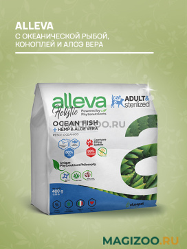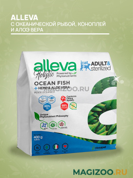 Полнорационный беззерновой корм для взрослых кошек с океанической рыбой, коноплей и алоэ вера.