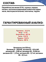 Энергетическая ценность: 3640 ккал/кг, 15,30 МДж/кг (48 % от белка, 30 % от жира).