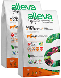 Сухой корм ALLEVA HOLISTIC ADULT DOG MEDIUM/MAXI LAMB & VENISON беззерновой для взрослых собак средних и крупных пород с ягненком, олениной, коноплей и женьшенем (2 кг)