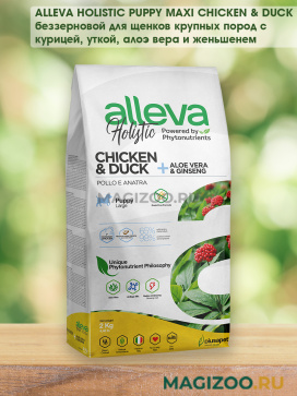 Беззерновой полнорационный корм для щенков крупных пород. Курица, утка, алоэ вера и женьшень.