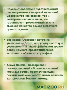 Alleva Holistic - беззерновой полнорационный сбалансированный корм для собак, обеспечивающий полный комплекс необходимых веществ для здоровья Вашего питомца.