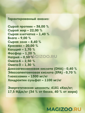 Корм содержит уникальный комплекс натуральных фитонутриентов и добавок: