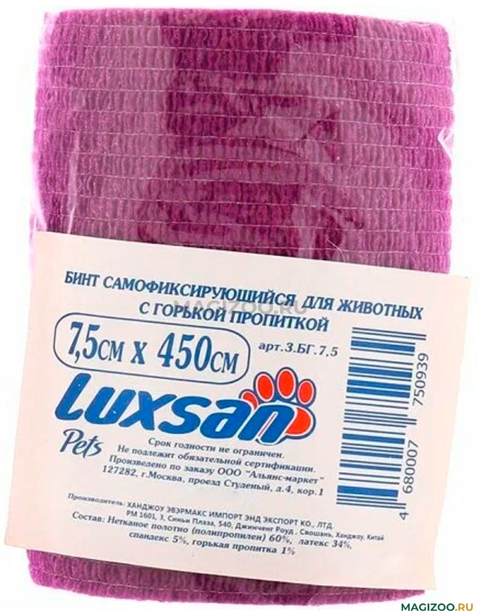 Бинт самофиксирующийся для животных Luxsan с горькой пропиткой. Профессиональная защита повязок от разгрызания.