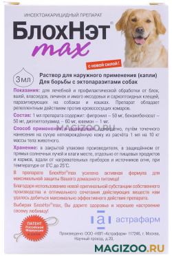 БЛОХНЭТ MAX – инсектоакарицидный препарат для собак и щенков с усиленной активной формулой.