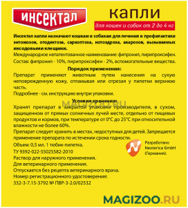 Капли Инсектал для взрослых кошек и собак весом от 2 до 4 кг разработаны с использованием современных разработок мировой ветеринарной медицины, что позволило сделать их высокоэффективными и безопасными.