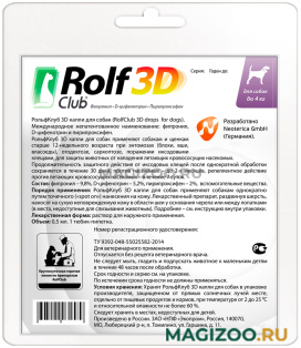 ПОРЯДОК ПРИМЕНЕНИЯ:Капли Рольф Клуб применяют собакам и щенкам старше 12-недельного возраста при энтомозах (блохи, вши, власоеды), отодектозе, саркоптозе, поражении иксодовыми клещами, для защиты животных от нападения летающих кровососущих насекомых. Противопоказанием к применению капель является повышенная индивидуальная чувствительность животного к компонентам лекарственного препарата. Не подлежат обработке больные инфекционными болезнями и выздоравливающие животные, кормящие и беременные самки, щенки моложе 12-недельного возраста. Запрещено применять препарат другим видам животных. Рольф Клуб 3D капли для собак применяют собакам однократно путем точечного («spot on») нанесения на кожу. Кончик тюбик-пипетки предварительно отрезают ножницами. Лекарственный препарат, раздвинув шерсть, наносят на сухую неповрежденную кожу в области шеи у основания черепа или между лопатками (в места, недоступные для слизывания животным). При обработке крупных собак массой (свыше 60 кг), капли дозируют из расчета 0,125 мл/кг, используя пипетки разного объема. В случае наличия присосавшихся клещей и паразитирующих насекомых, открепление и гибель их наступает в течение 1-2 часа после обработки. Продолжительность защитного действия от иксодовых клещей после однократной обработки сохраняется в течение 30 дней, против насекомых - до 2-х месяцев, репеллентное действие против летающих кровососущих насекомых - в течение 7 суток. Повторные обработки проводят по показаниям, но не чаще 1 раза в месяц. Для уничтожения иксодовых клещей на теле животного лекарственный препарат в количестве 1 капли наносят на клеща и место его прикрепления к коже. Если в течение 20 минут клещ самопроизвольно не отпадает, его аккуратно вытаскивают из кожи пинцетом и уничтожают. При отодектозе (ушной чесотке) наружный слуховой проход очищают от струпьев и корок, затем закапывают в каждое ухо по 1-3 капли препарата (в зависимости от размера животного). Ушную раковину складывают вдоль пополам и массируют ее основание. Обработку повторяют 2-3 раза с интервалом 5-7 дней. Лекарственный препарат обязательно вводят в оба уха, даже в случае выявления клинических признаков заболевания только в одном ухе. При саркоптозе собак препарат наносят на пораженные участки и распределяют кончиками пальцев в перчатке с захватом до 1 см здоровой кожи в дозе 0,15 мл/кг. Обработку проводят 2-4-кратно, с интервалом 7-10 дней до клинического выздоровления животного, которое подтверждают двумя отрицательными результатами акарологических исследований. Симптомы, возникающие при передозировке препарата: избыточная саливация, слезотечение, признаки раздражения кожи. В этих случаях препарат смывают водой с моющим средством и при необходимости животному назначают препараты симптоматической терапии. Особенностей действия лекарственного препарата при первом применении или при его отмене не выявлено. Следует избегать нарушений режима применения препарата, так как это может привести к снижению эффективности. Побочных явлений и осложнений при применении капель Рольф Клуб 3D в соответствии с настоящей инструкцией, как правило, не наблюдается. При повышенной индивидуальной чувствительности животного к компонентам препарата, возможны индивидуальные реакции (избыточная саливация, слезотечение, признаки раздраж