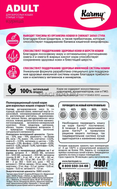 Информация о составе и ингредиентах, цветовом решении, технических и иных характеристиках, стране-изготовителе, внешнем виде и комплекте поставки товара носит справочный характер и основана на последних доступных к моменту публикации сведениях. Доставка данного товара осуществляется во все регионы РФ.KARMY – это история, объединяющая традиции, опыт и современные разработки, что стало основой производства кормов для собак и кошек.
