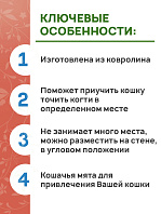В комплекте с когтеточкой поставляется чистая и качественная кошачья мята, которая засыпается в специальные отверстия и долгое время источает привлекательный запах, который не оставит равнодушным ни одного питомца!