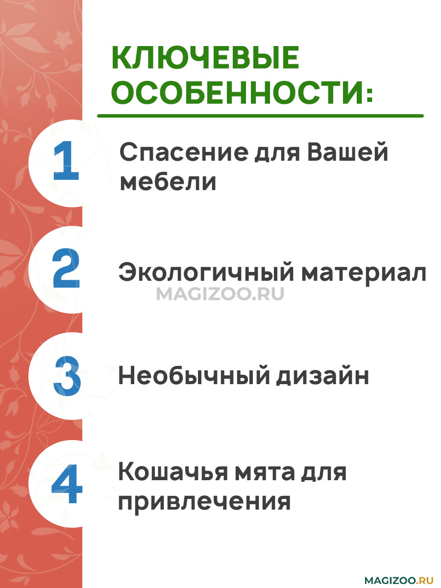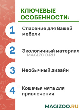 Кошачья мята — лучший стимул для игр! Она обязательно привлечет внимание Вашего питомца к когтеточке.В комплекте с когтеточкой поставляется чистая и качественная кошачья мята, она засыпается в специальные отверстия в когтеточке и долгое время источает привлекательный запах, который не оставит равнодушным ни одного питомца!